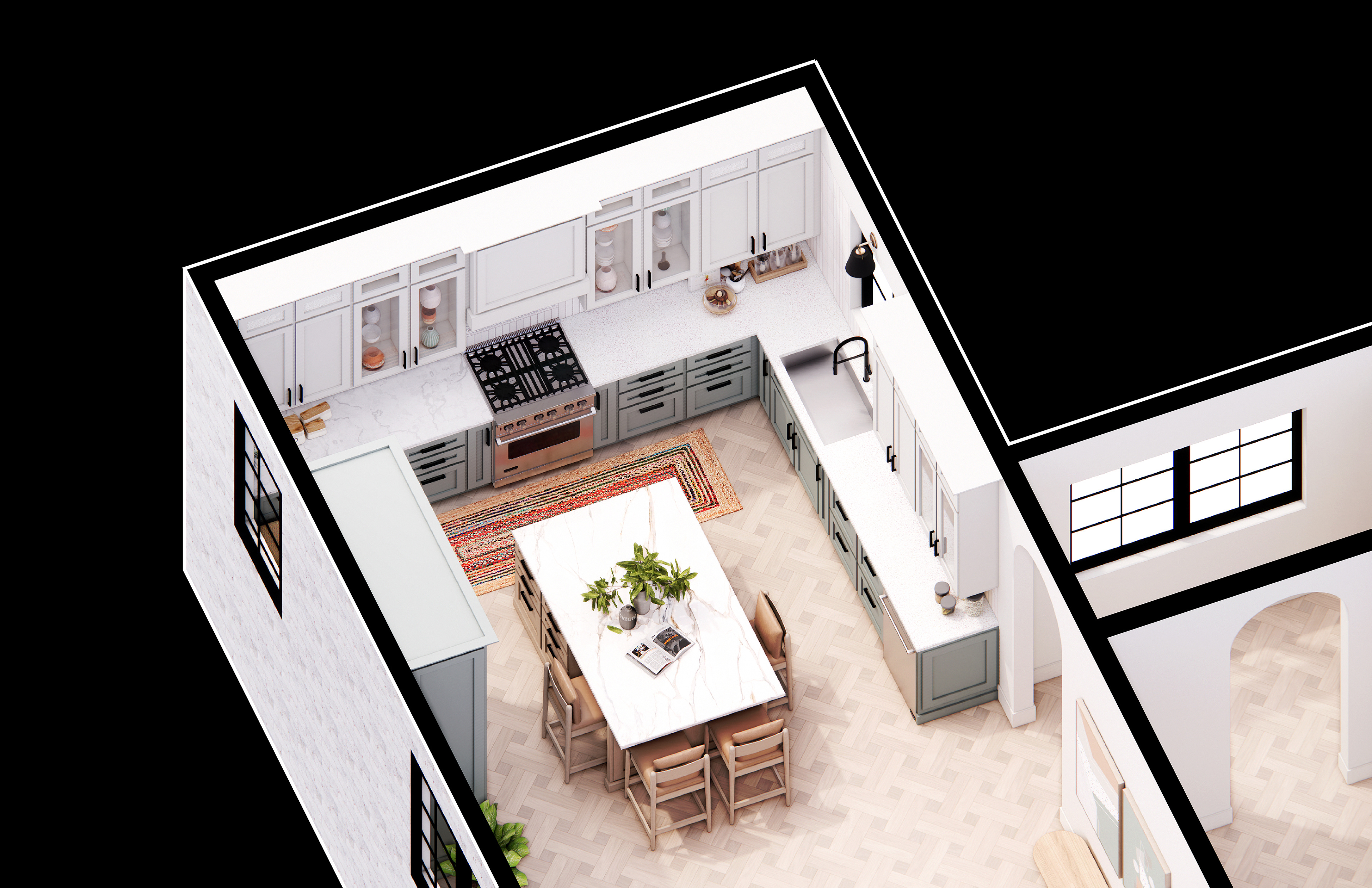✔ Build‑aware visualization that reflects proportion, materiality, & spatial logic